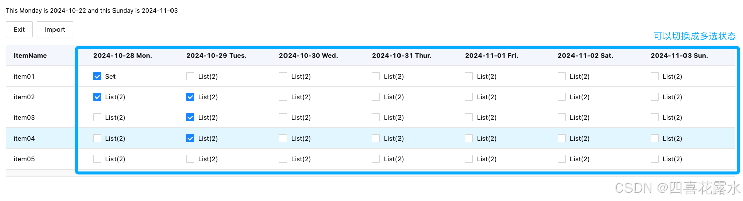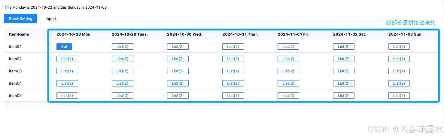 需求:根据当前日期的所在周,拼接表格的内容并弹出弹窗