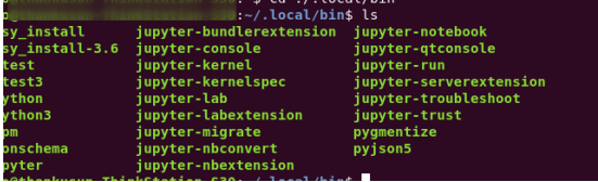 执行jupyter-lab则可以进入jupyterlab.可以通过ls查看bin下jupyter文件,安装的jupterlab名字与下列文件名字对应。由下图可以看到安装jupyterlab后,包括以下相关文件。