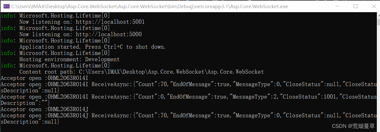 前后端websocket数据通讯-Asp.Core.WebSocket 前后端websocket数据通讯-Asp.Core.WebSocket.netcore 3.1已经集成了Asp.Core.WebSocket,无需单独引入其他包。新建Asp.Core web项目,如果是用于技术验证建议选择有项目模板的,直接使用已有页面进行验证。经验证前端可主动给后端发消息,后端也可主动给前端发消息根据配置可开启https和http访问,websocket可开启ws和wss访问