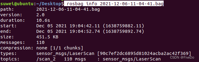 首先使用rosbag info 查看bag包的信息