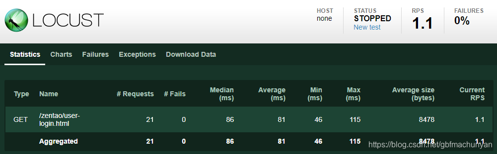 os.system("locust -f zentaoTest.py --host=http://127.0.0.1:8088")