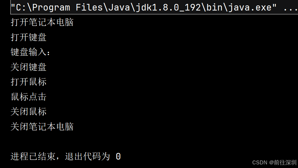 第20行代码:将device类型强制转换为KeyBoard类型,并调用input方法,打印“键盘输入”语句。