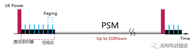 PSM即低功耗模式,是3GPP R12引入的技术,其原理是允许UE在空闲态一段时间后,关闭信号的收发和AS(接入层)相关功能,相当于部分关机,从而减少天线、射频、信令处理等的功耗消耗。