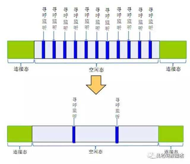 PSM在数据连接终止或周期性TAU完成后启动。数据连接终止后,终端首先进入空闲模式,并进入不连续接收(DRX)状态,此时,终端监听寻呼(Paging)。
