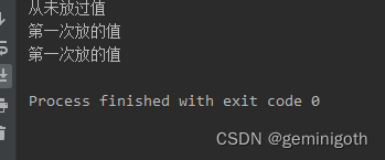 控制台输出的结果表示通过ThreadLocal向每个线程存储自己的私有数据,虽然3个线程都向t1存放数据,但是每个线程仅能取出自己的数据,不能取出其他线程存放的数据 。