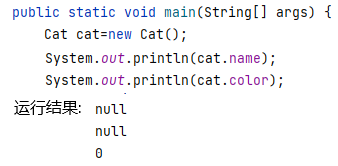 - 成员变量会有一个默认值:1.引用类型默认为null。2.基本数据类型默认为对应的0值。