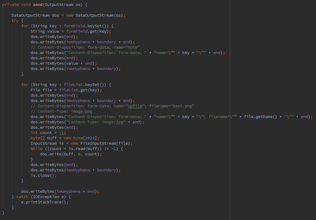 分析完multipart/form-data的格式后,自己写代码就比较容易了。
