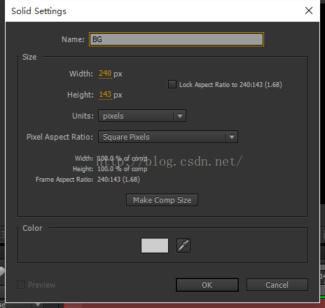 大小维持默认与合成一样大小,这个固态层作为背景,颜色白色稍微灰一点。这样便于分辨。