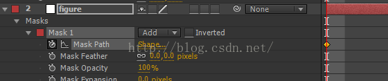 先点mask1左边的小三角展开,点mask path前的小秒表给mask path打上一个关键帧。同时右边时间轴上多了一个菱形(关键帧)。