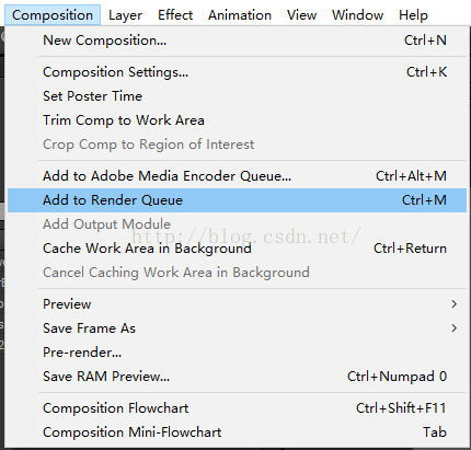 选择菜单栏中的composition(合成)选择add to render queue