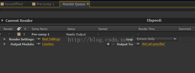 然后还是点击金黄的字:Not yet specified,指定输出路径。我新建了一个hoverEffect文件夹,序列的名字为hoverEffect_[#####].png,