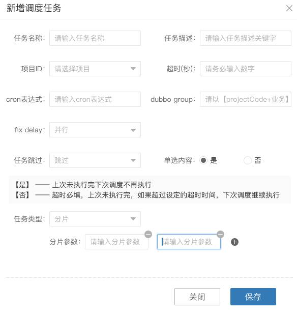 分片任务,支持任务分片,通过参数发送给任务执行机,执行机可以通过判断参数来进行分片作业的开发,同时支持动态分片,以分片参数和执行机为纬度进行分片,支持动态扩容执行机以及分片参数