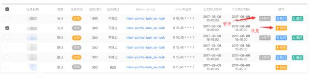 任务状态停止时,任务将不再被触发,若任务在执行过程中被暂停,则正在执行的任务不会被阻塞(由于任务执行结果状态中存在超时失败状态,因此如果点击暂停按钮时阻塞了当前正在执行的任务,会使当前任务的执行状态变为超时,不符合超时状态真正的意义),会延迟停止,即等到当前任务执行完再真正停止任务