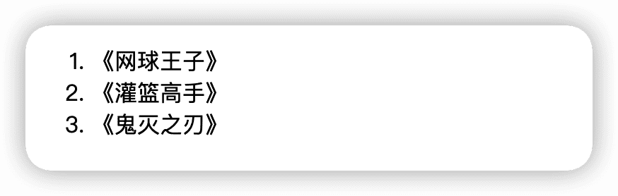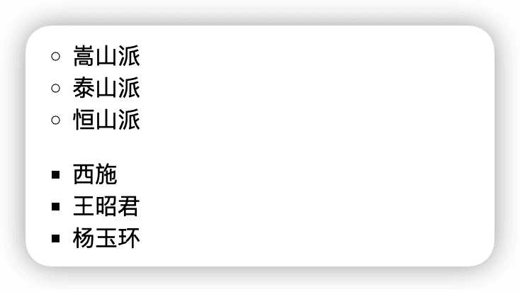 除开有序列表之外,还有无序列表,无序列表以 ul
