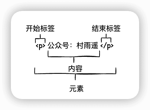 元素又是由一对标签加上内容所共同构成,以下是一个简单的文本标签示例。