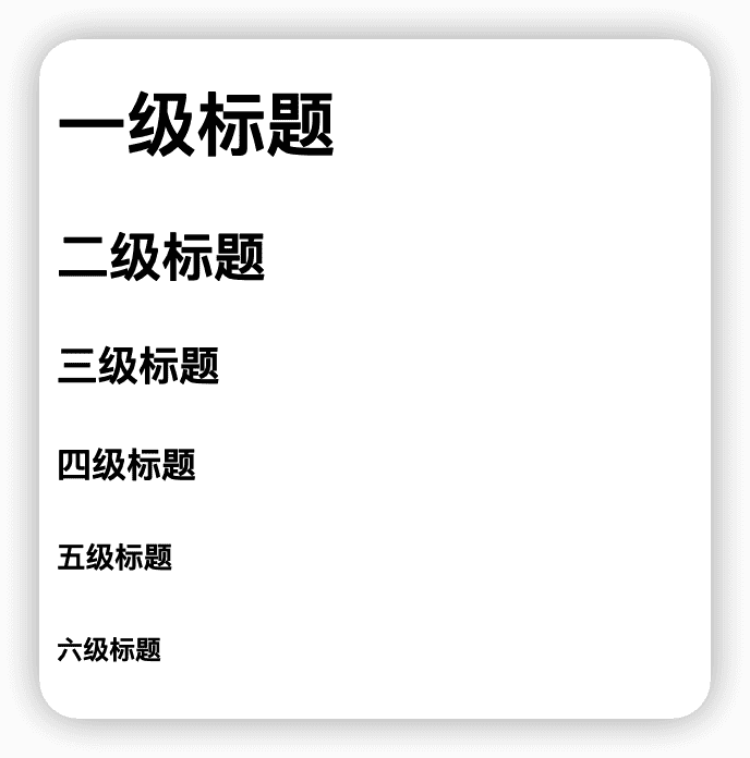 这里的标题又可以分为 6 级,其对应标签分别是:<h1>