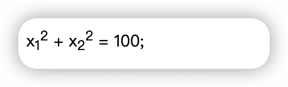 x<sub>1</sub><sup>2</sup> + x<sub>2</sub><sup>2</sup> = 100;
