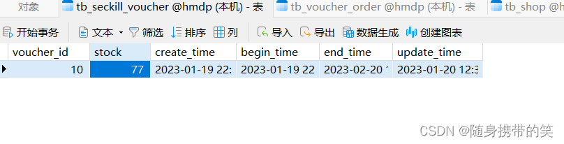 创建一个数据库 hmdp,涉及到的表及含义如下