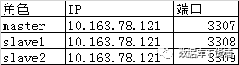 我在同一台机器上搭建的3个mysql实例,角色说明如下