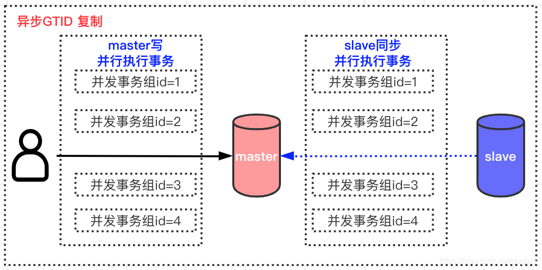 其实数据库本身就是支持多个事务同时操作的,因为他们本身就是互相不干扰的,比如这些事务是操作不同的表,或者操作不同的行,不存在资源的竞争和数据的干扰,那么在主库上并行执行的事务,在从库上肯定也是可以并行执行。比如在master上有三个事务同时分别操作三张表,这三个事务在slave上面也是可以并行执行的。所以,我们可以把那些在主库上并行执行的事务