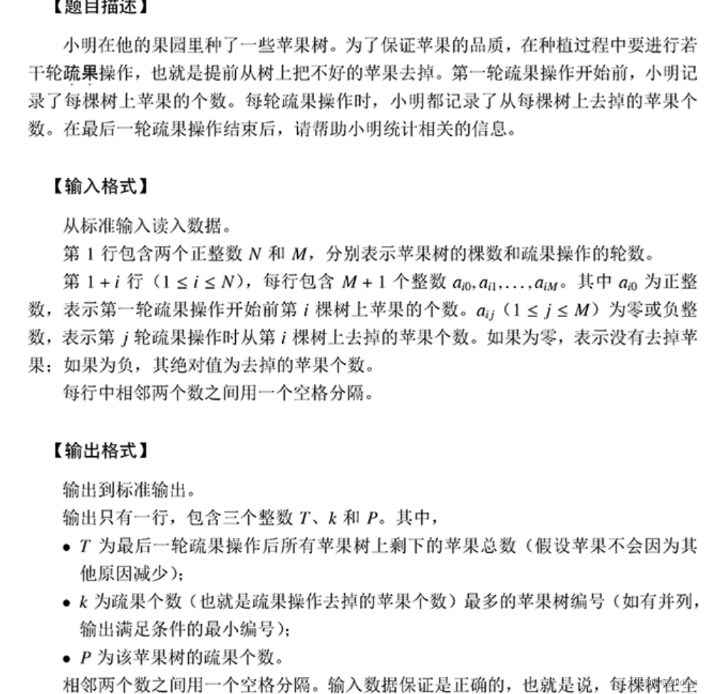 ccf202012-1 然后,顿顿根据自己平日里对小菜的暗中观察,以百分制给每一项指标打分,即小菜同学第 i(1≤i≤n)项指标的得分 scorei 是一个 [0,100] 范围内的整数。接下来输入 n 行,其中第 i(1≤i≤n)行包含用空格分隔的两个整数 wi 和 scorei,分别表示第 i 项指标的重要程度和小菜同学该项的得分。鉴于每一项指标的重要性不尽相同,顿顿用一个 [−10,10] 范围内的整数 wi 来表示第 i(1≤i≤n)项指标的重要程度。输出一个非负整数 y,表示小菜同学期末的安全指数。从标准输入读入数据。
