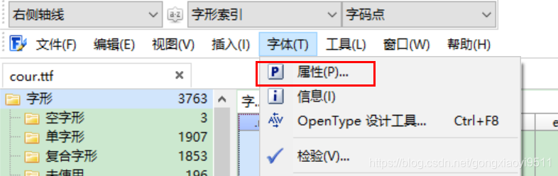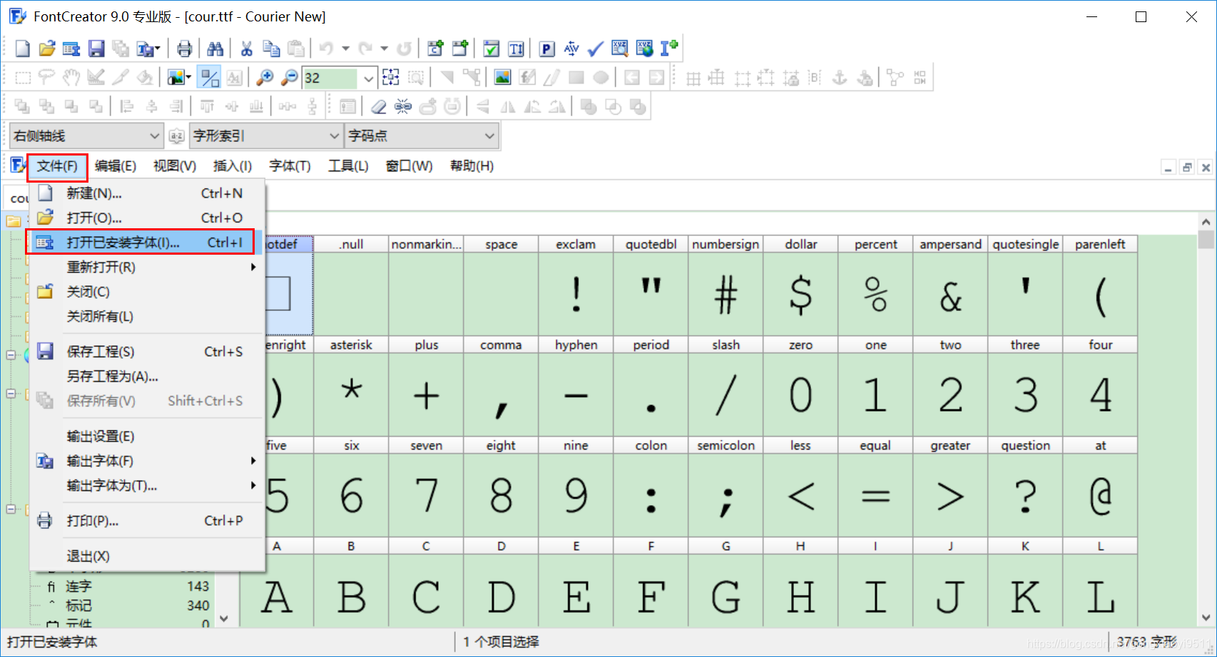 打开这个软件,点击 文件——打开已安装字体。选择刚才拷贝出来的cour.tty文件。或者直接将这个tty文件拖进程序窗口中也可以。