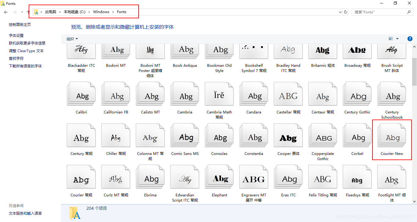 第一步是找到你想要的字体文件。像我需要Courier New字体,系统中就有。