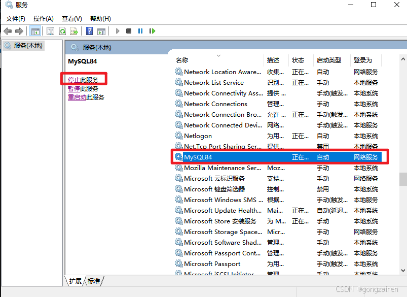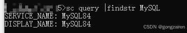MySQL84 这里指的是你的MySQL版本 默认是直接MySQL就行 如果不行就需要加上确切的MySQL服务名称