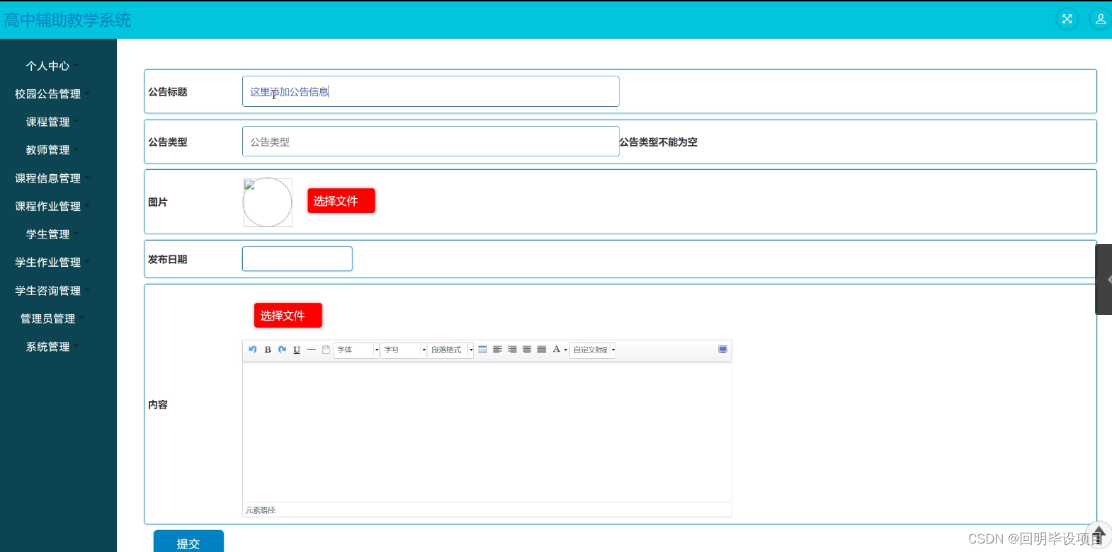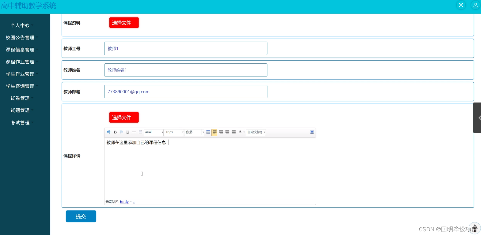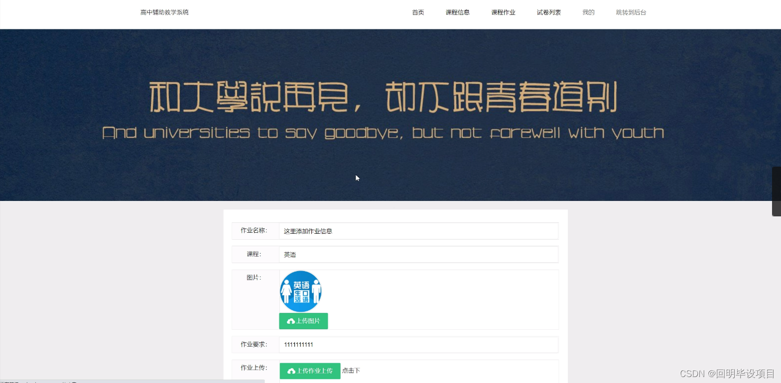 随着教育信息化的发展,高中教育也逐渐进入了数字化时代。传统的教学方式已经无法满足现代学生的需求,因此,建立一个高效、便捷、安全的高中辅助教学系统显得尤为重要。系统可以实现在线课程学习、作业管理、考试评测等功能,提高学生的学习效率和成绩水平。同时,系统还可以为教师提供更好的教学资源和管理工具,促进教学质量的提升