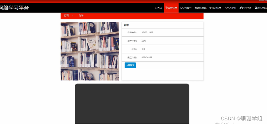 课程信息,在课程信息页面可以查看课程编号,课程分类,价格,课程介绍等内容,可以进行立即购买操作,如图5-3所示。
