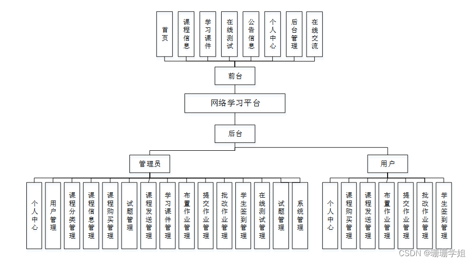 考虑到实际生活中网络学习方面的需要以及对该平台认真的分析,将系统权限按管理员和用户这两类涉及用户划分。
