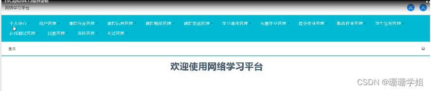 管理员登录系统后,可以对个人中心,用户管理,课程分类管理,课程信息管理,课程购买管理,课程发送管理,学习课件管理,布置作业管理,提交作业管理,批改作业管理,学生签到管理,在线测试管理,试题管理,系统管理,考试管理等功能进行相应的操作,如图5-6所示。