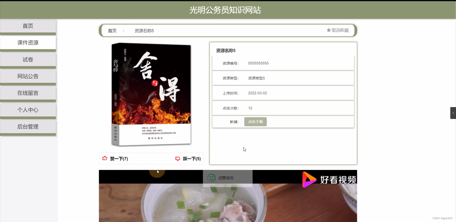 课件资源功能:对光明公务员知识网站上的课件资源进行分类、整理和评估,了解当前课件资源的覆盖范围、质量水平和更新频率,发现其中存在的问题和不足。