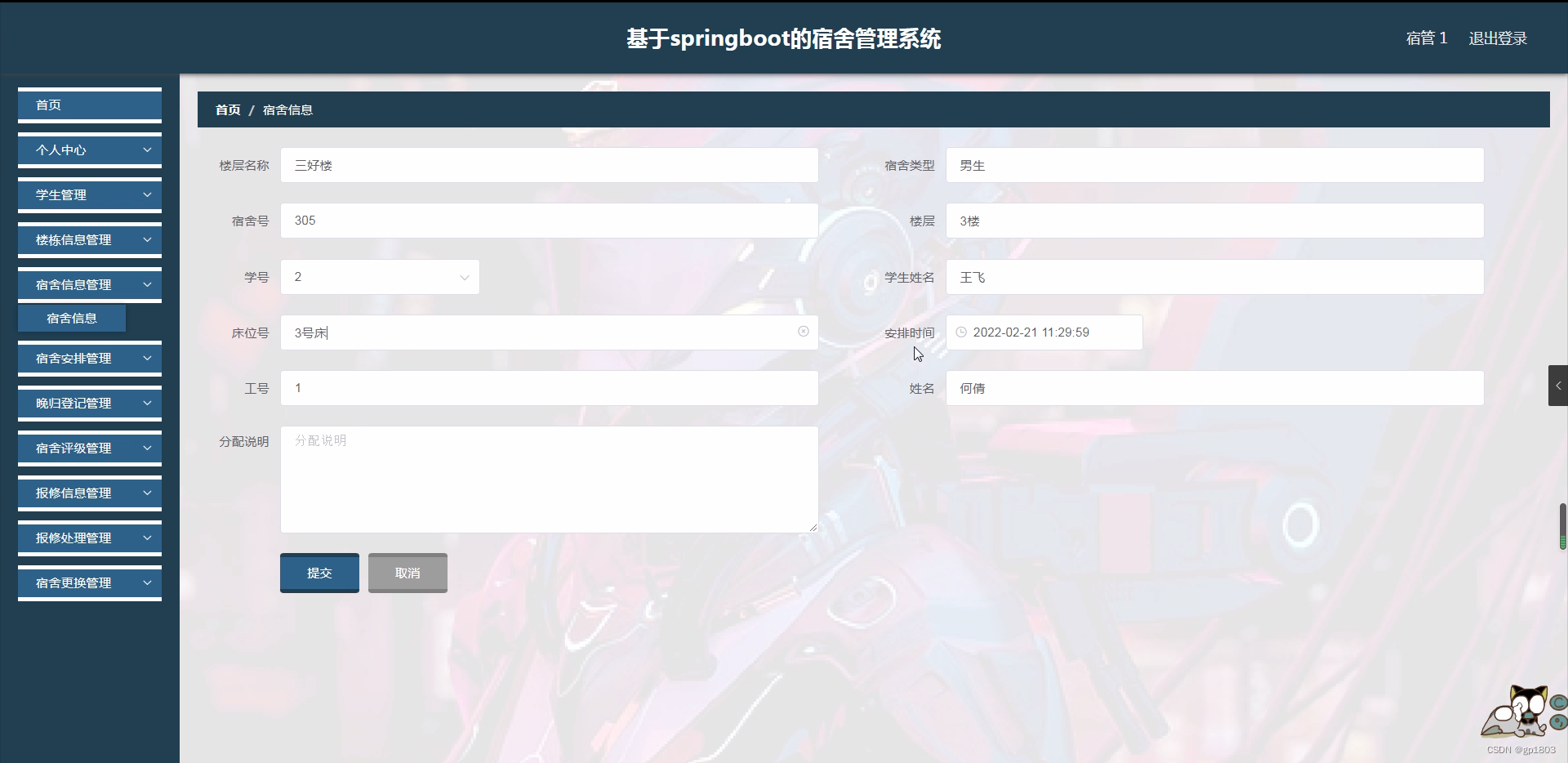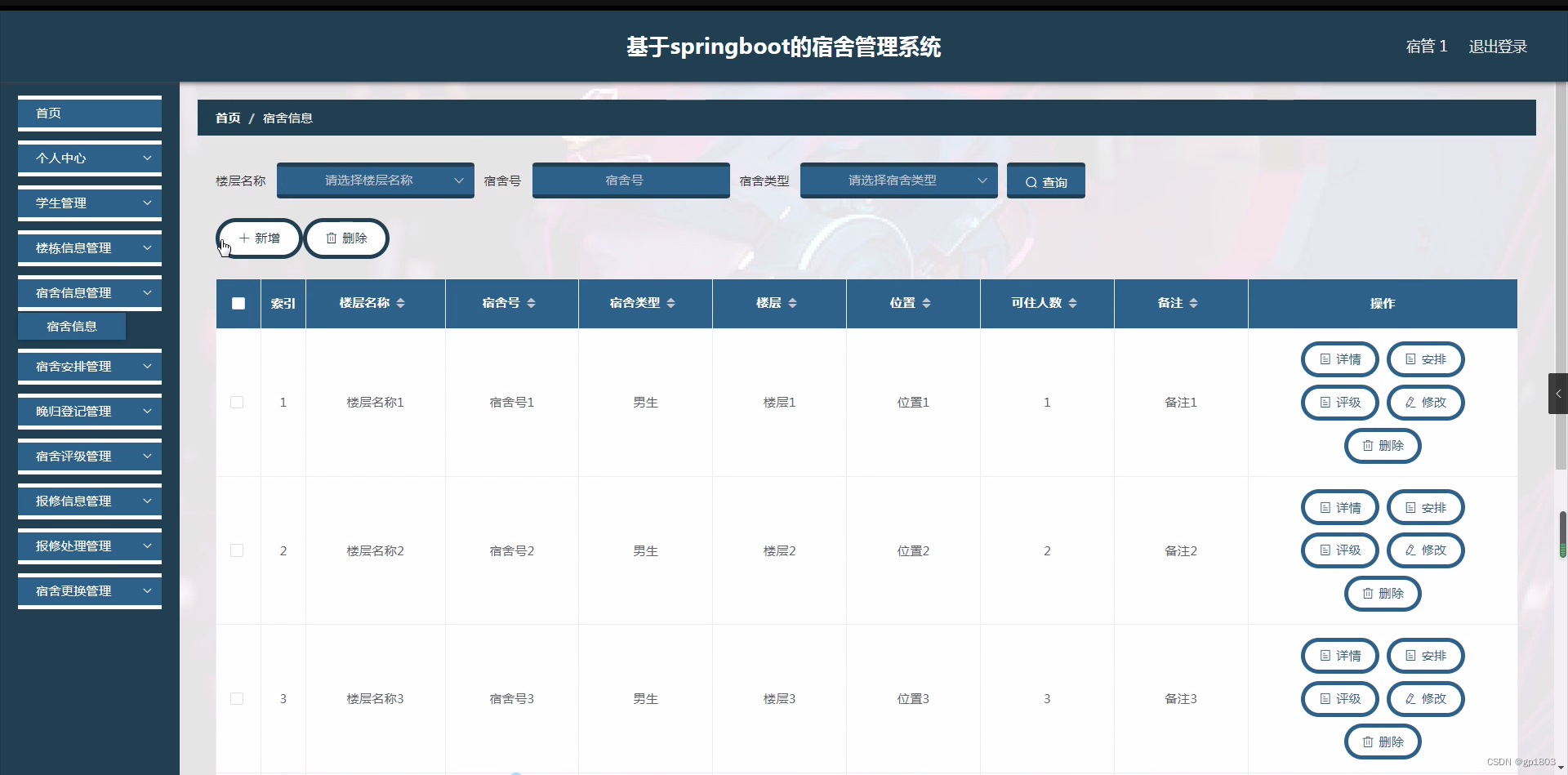 - 学生信息管理:包括学生入住登记、学生退宿办理、学生信息修改等功能。