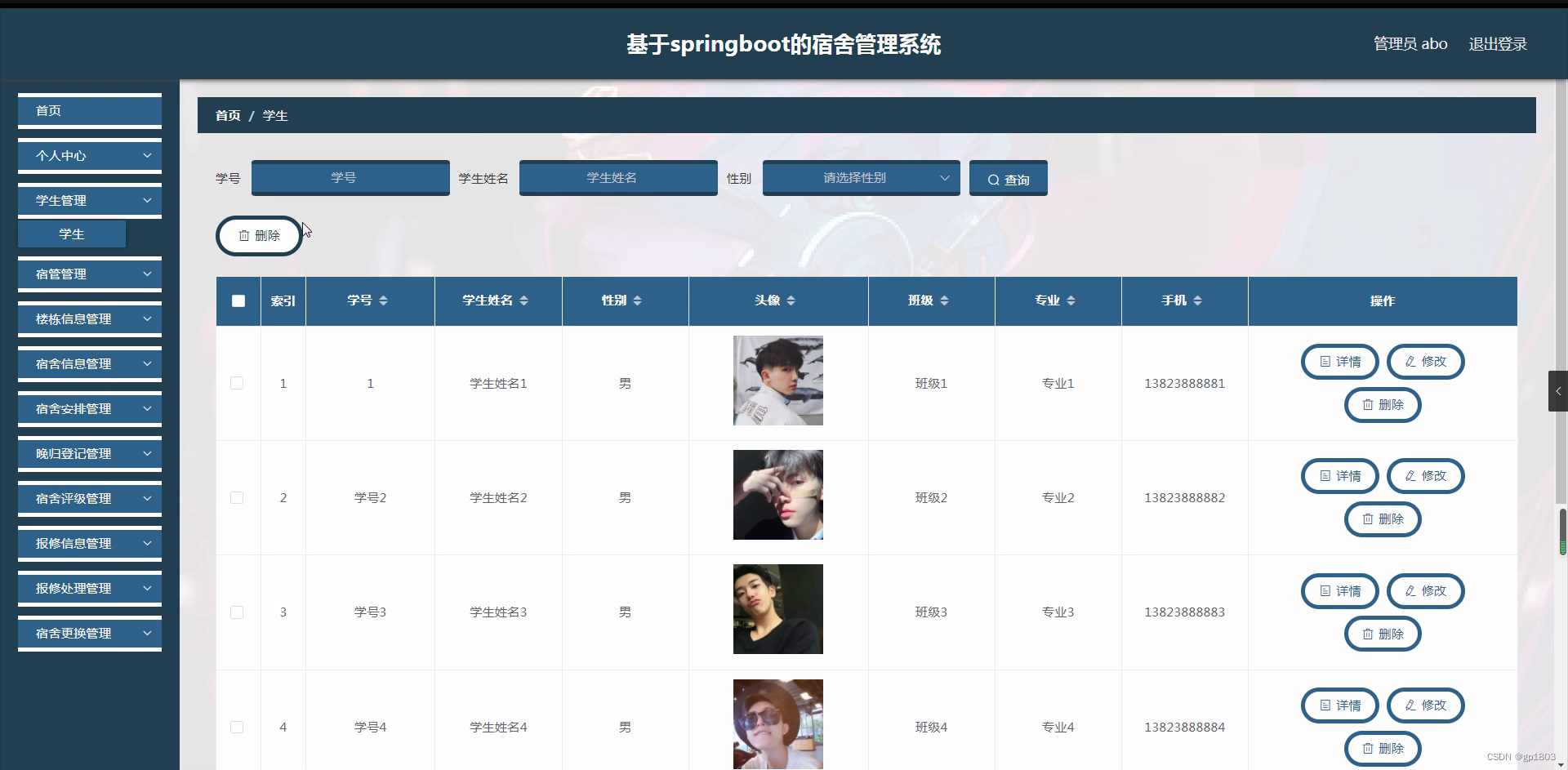 - 实现学生宿舍信息的集中管理和查询,方便学生和宿舍管理员的日常工作。