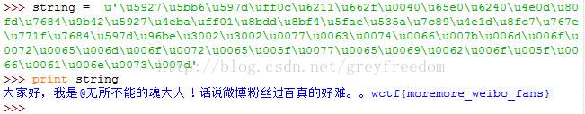 打开题目发现是一堆Unicode码。使用python转换一下: