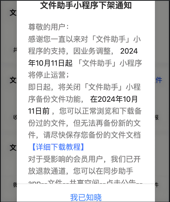 对于已经习惯使用“文件助手”小程序的用户来说,停运消息无疑带来了一定的不便。许多用户表示,他们将不得不寻找替代工具来满足文件分享和管理的需求。市场上虽然存在多种文件管理应用,但用户需要时间来适应新的服务,并评估哪些应用最能满足他们的具体需求。此外,对于一些在业务流程中深度依赖“文件助手”小程序的企业用户而言,迁移至其他平台可能需要更多的时间和成本投入。