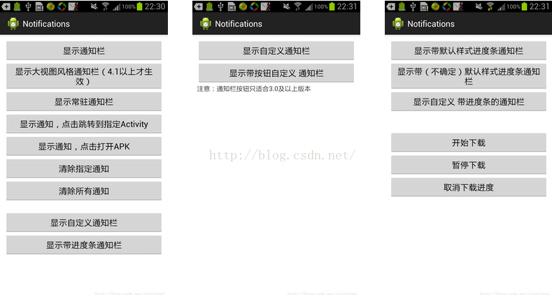 设置带进度条的通知,比如用于任务下载之类的情形,注意:此方法只能在4.0及4.0以后的版本中使用,4.0以下的版本只能通过自定义布局实现。