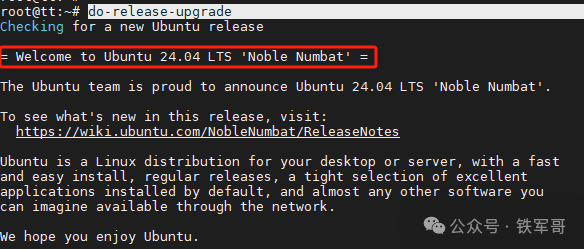 接下来,就可以运行do-release-upgrade命令来触发24.04的升级流程了。