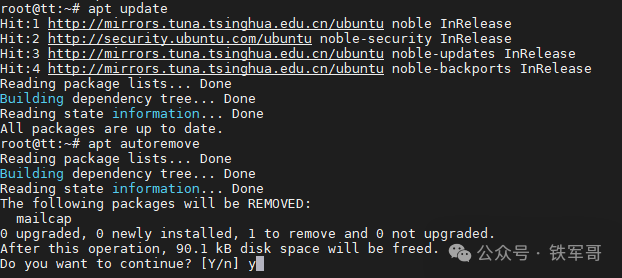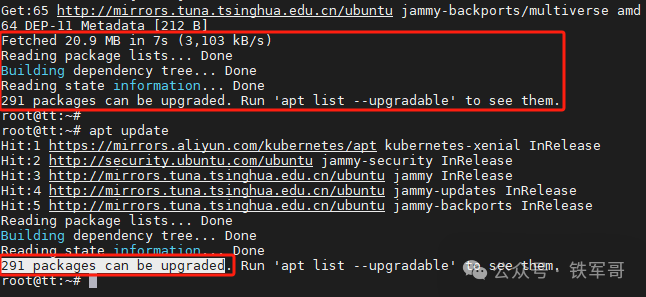 在Ubuntu最常用的更新命令有apt update和apt upgrade。在每次安装新软件或升级前,一般都需要先运行apt update,用于从配置的APT软件源中同步最新的软件包元数据(如版本、依赖关系等),更新本地缓存,仅刷新可用包的信息,但不会安装或升级任何软件包。