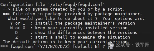 提示配置/etc/fwupd/fwupd.conf,输入y继续升级。