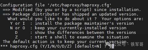 提示配置/etc/haproxy/haproxy.cfg,输入y继续升级。