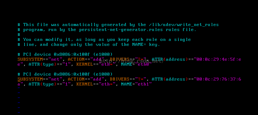 查看/etc/udev/rules.d/70-persistent-net.rules中的内容。