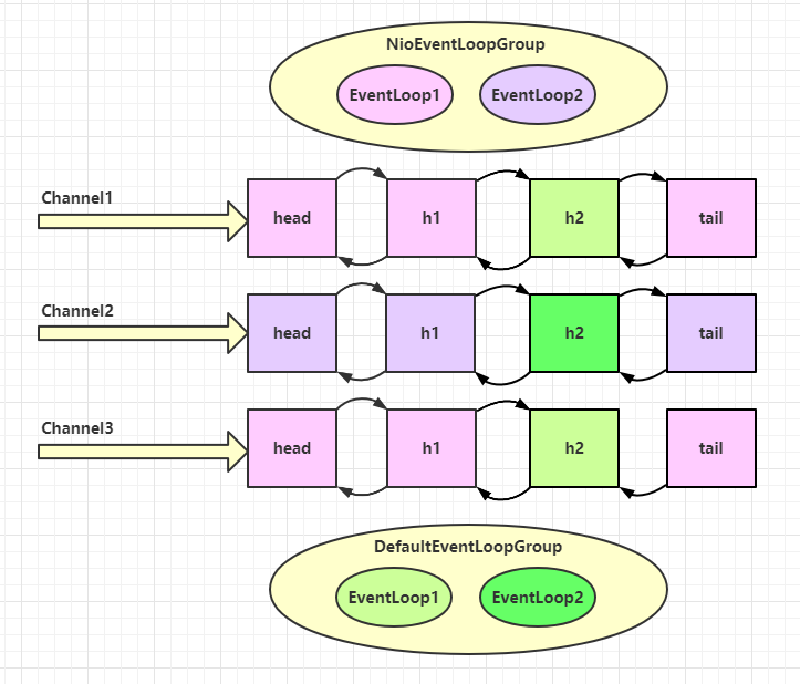 - 工序有多道,合在一起就是 pipeline,pipeline 负责发布事件(读、读取完成...)传播给每个 handler, handler 对自己感兴趣的事件进行处理(重写了相应事件处理方法)