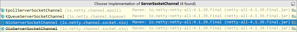 - 2 处,选择服务 Scoket 实现类,其中 NioServerSocketChannel 表示基于 NIO 的服务器端实现,其它实现还有