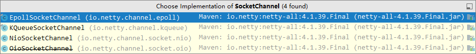 - 2 处,选择客户 Socket 实现类,NioSocketChannel 表示基于 NIO 的客户端实现,其它实现还有