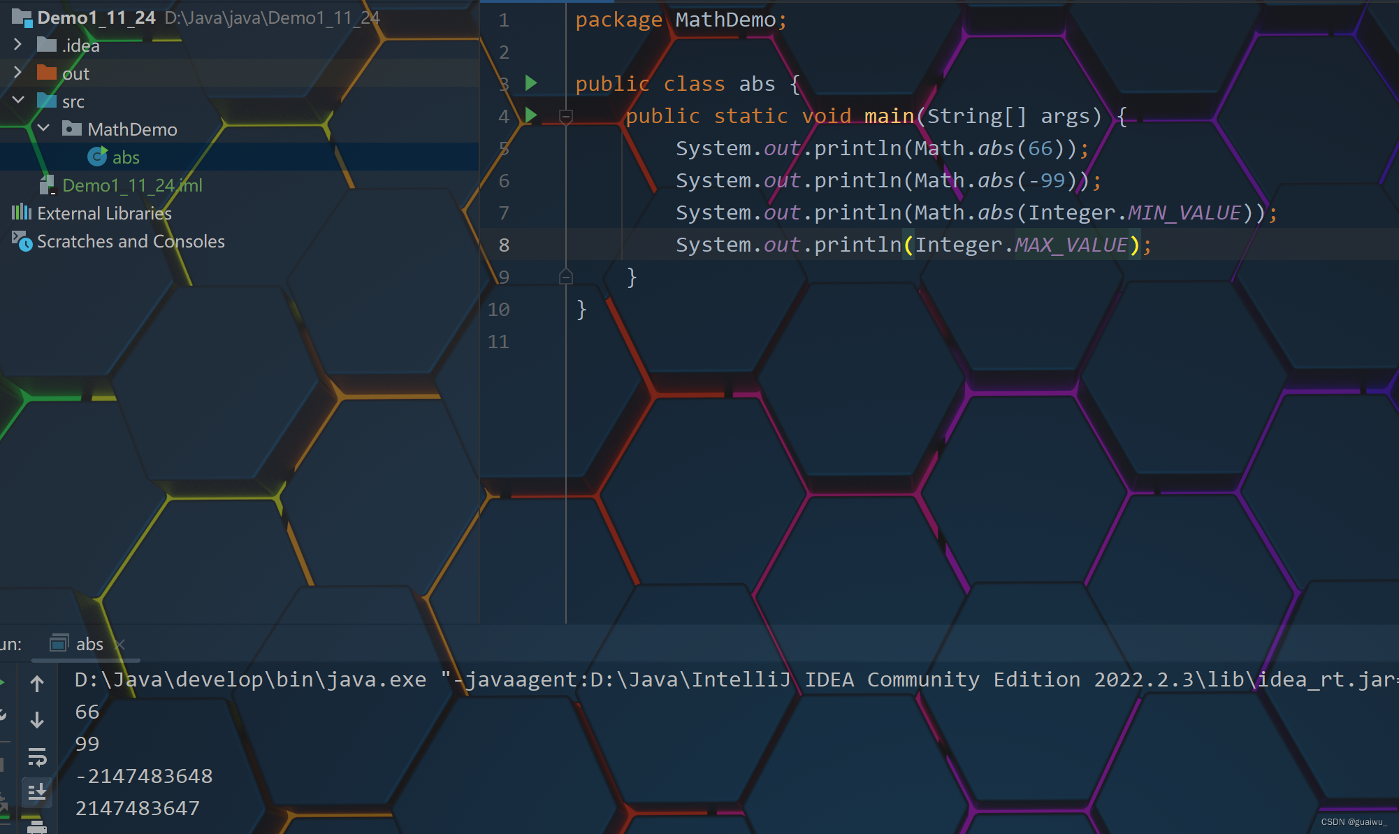 注意:abs转化绝对值的前提是在相应的类型范围内要有对应值例如:-2147483648是int的最小值,但int的最大值是2147483647,所以没有对应2147483648