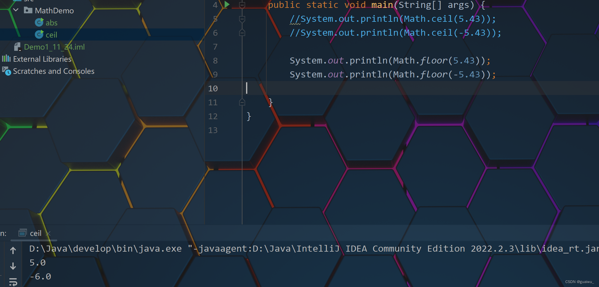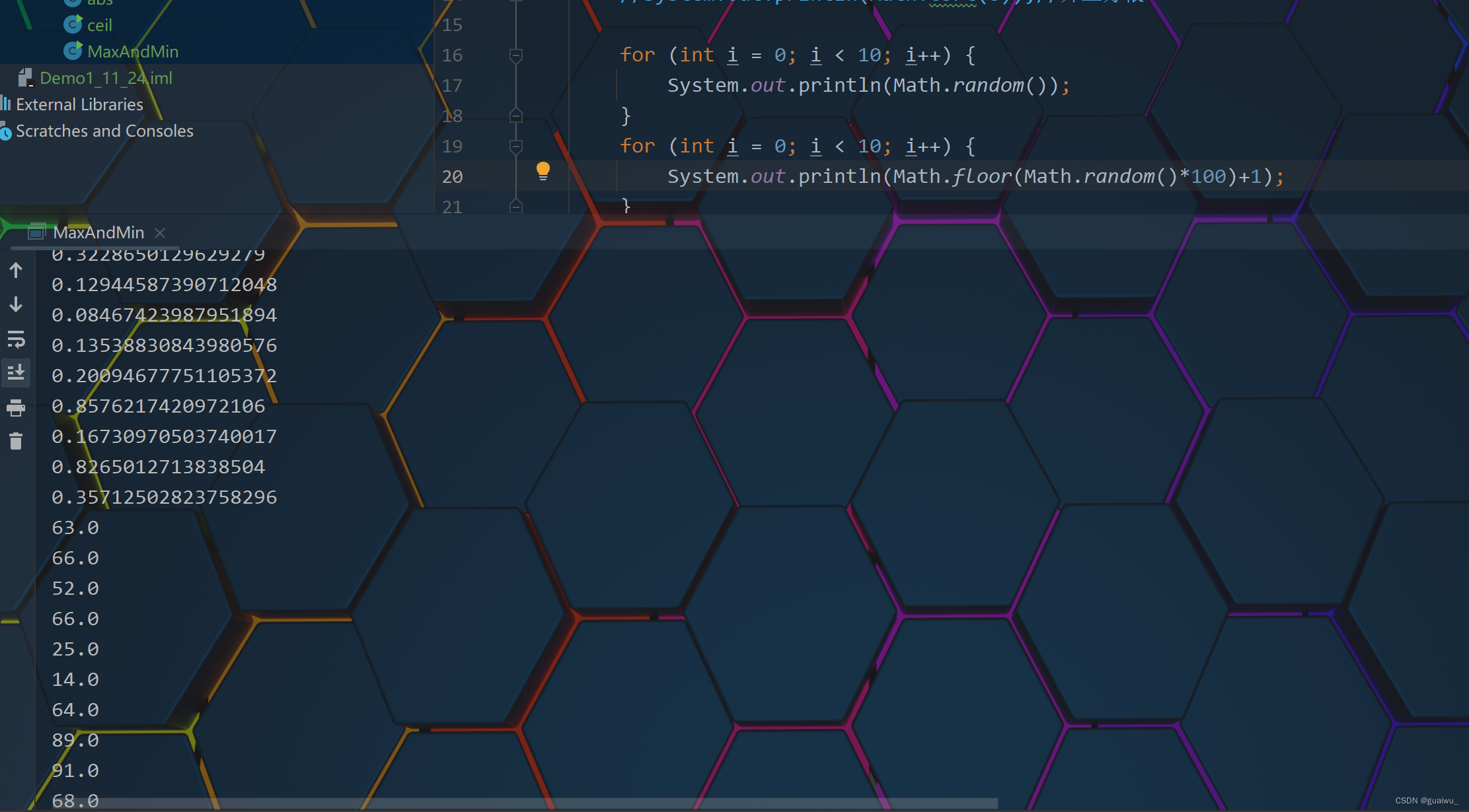 public static double random() 返回值为double的随机值,范围[0.0,1.0)