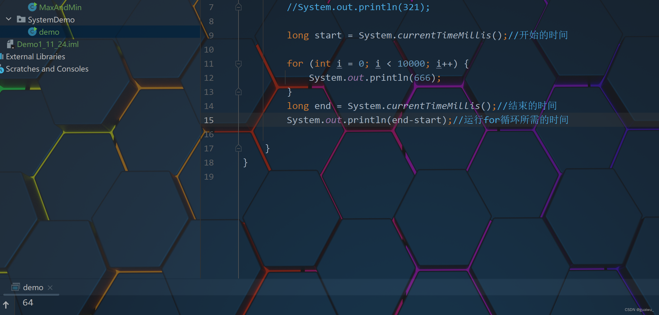public static long currentTimeMillis() 返回当前系统的时间毫秒值形式方法名