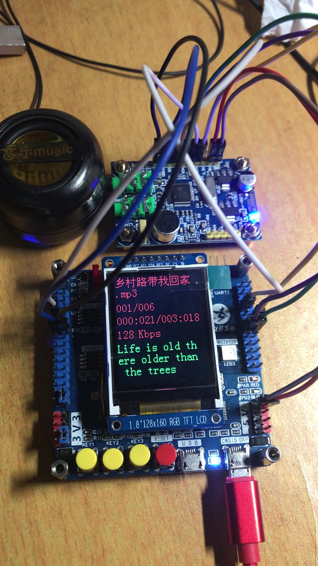 硬件课程设计:基于STM32的多功能播放器之MP3音乐播放 音乐播放是手机等电子产品最常见的功能,也是最具娱乐性的功能,在该模块中,我先从SD卡中读取已存放的MP3音乐文件,然后将读取的字节流依次送人VS1053中进行解码和播放,同时从VS1053相关的寄存器中读取音乐播放时间,在LCD上实时显示歌曲信息。.........